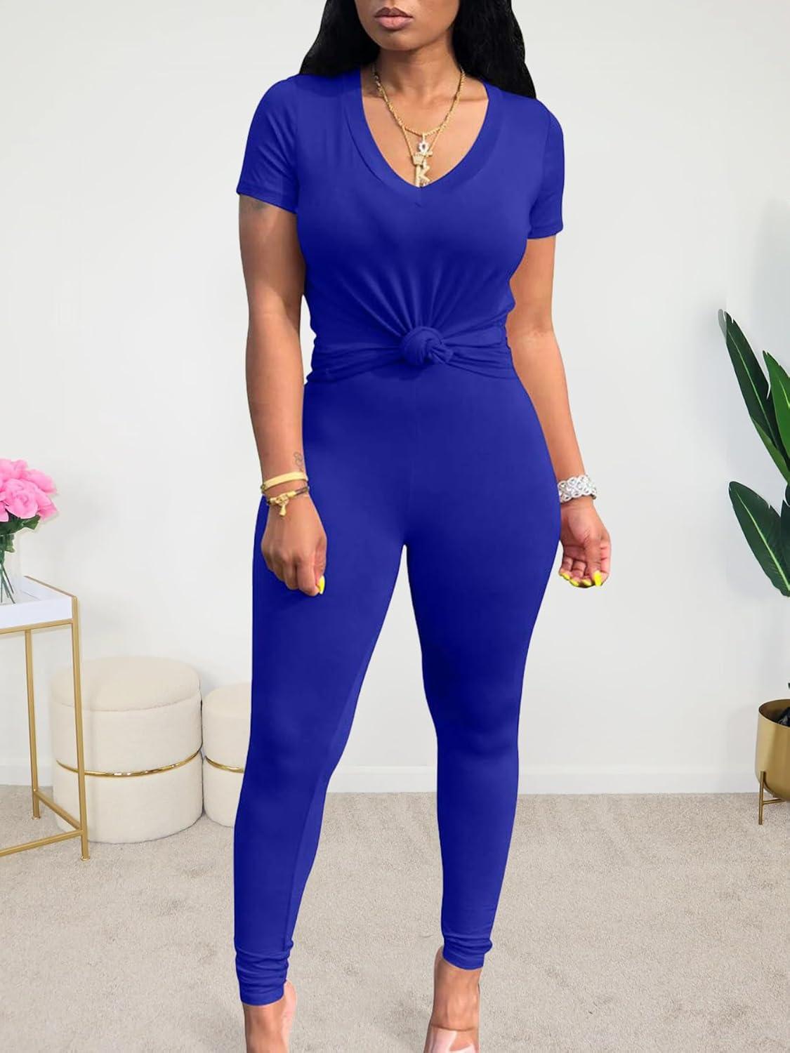 Lounge Sets for Women 2 Piece Summer Casual Jogger Workout Outfits Short Tops Long Pant Sweat suit leggings set(Blue)