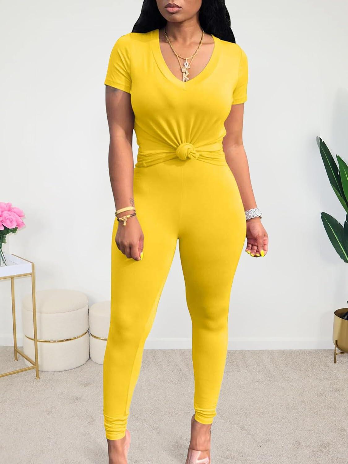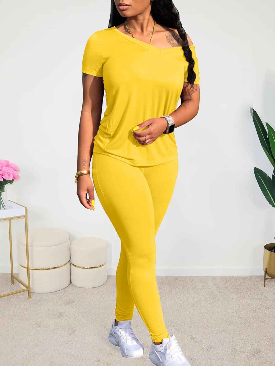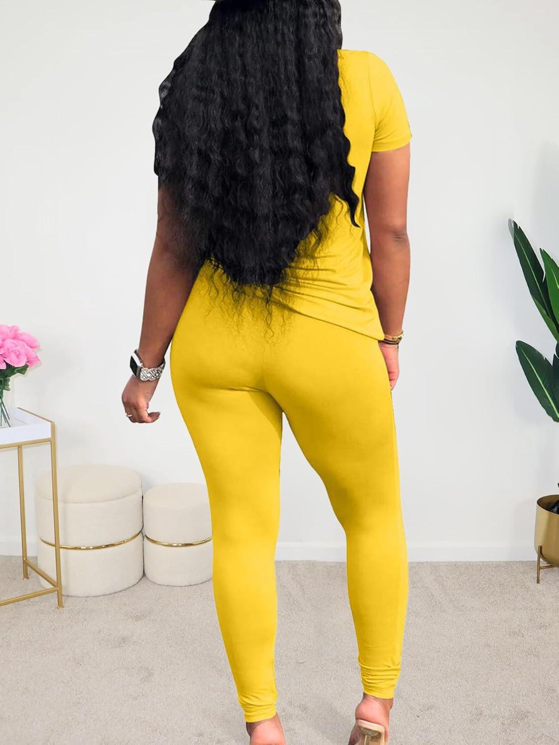 Lounge Sets for Women 2 Piece Summer Casual Jogger Workout Outfits Short Tops Long Pant Sweat suit leggings set(Yellow)