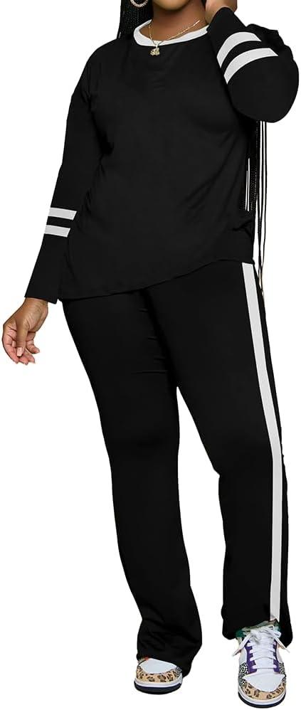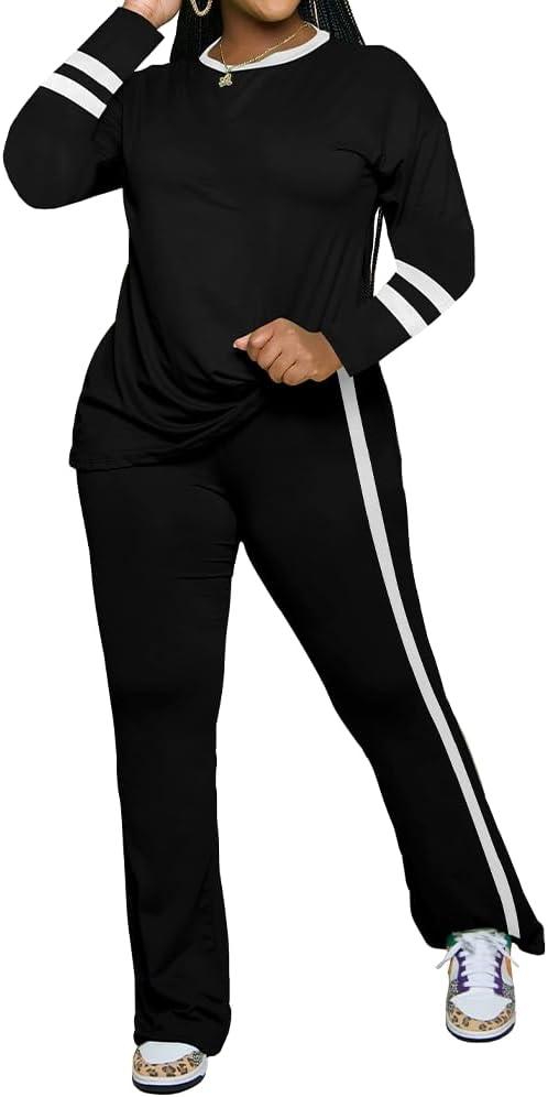 2 Piece Sets for Women Fall Casual Outfits Long Sleeve Top and Flare Pants Lounge Sets Track suit
