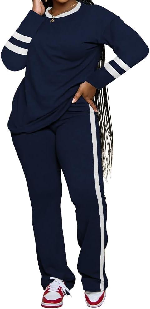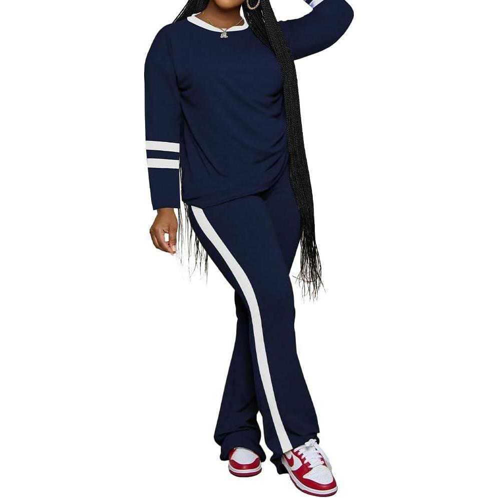 2 Piece Sets for Women Fall Casual Outfits Long Sleeve Top and Flare Pants Lounge Sets Track suit