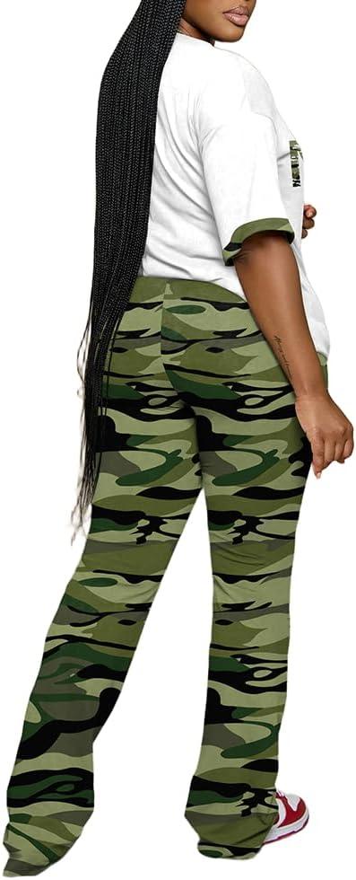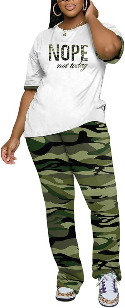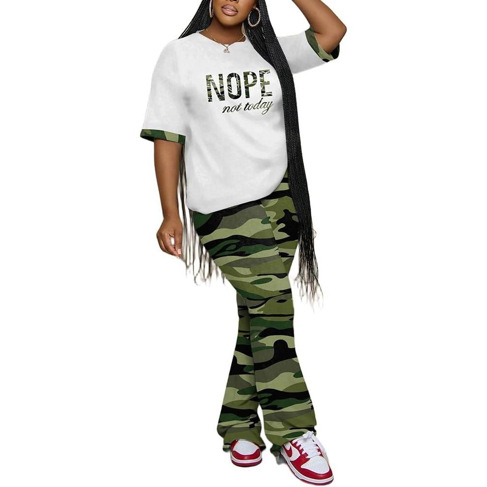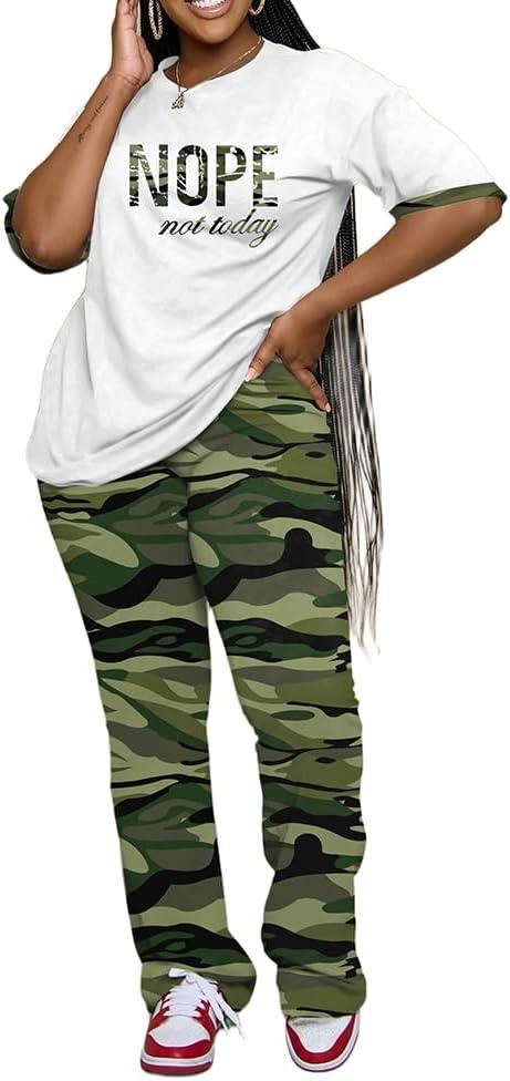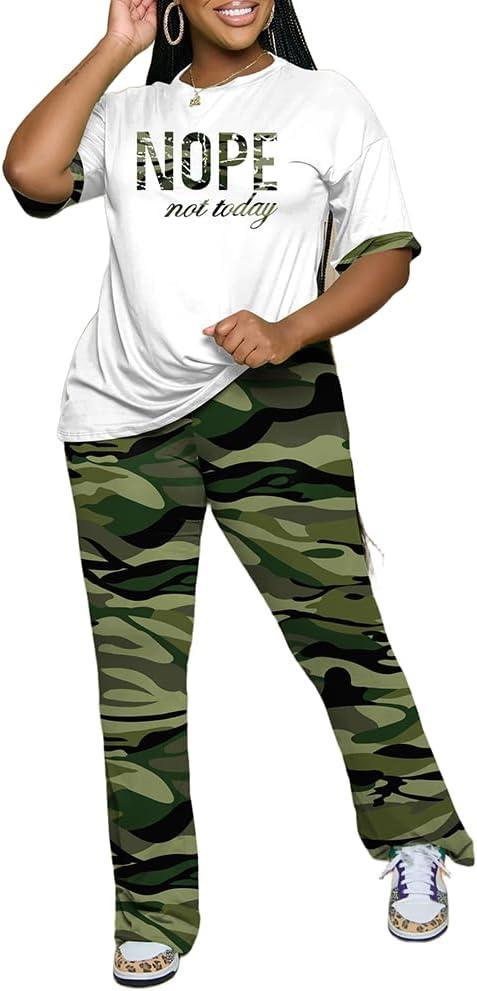 Womens Sets 2 Piece Outfits Casual Short Sleeve Top and Flare Pants Lounge Sets Tracksuit