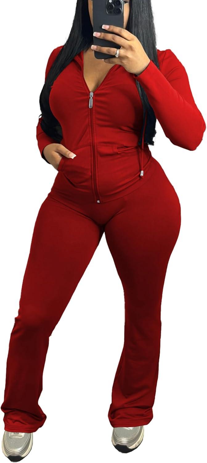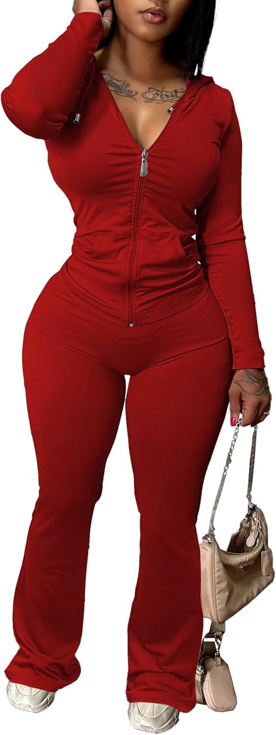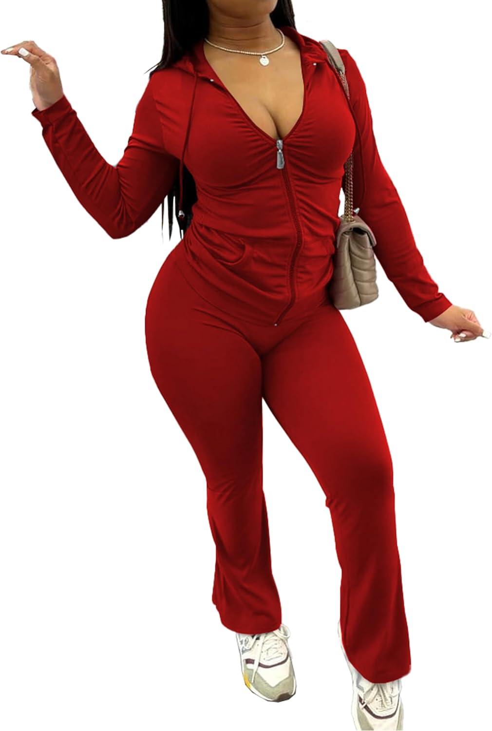 Save big on PINSV Women 2 Piece Outfits Workout Bodycon Tracksuit Long Sleeve Zip Up Hoodie Jacket Matching Flared Pants Sets(Red) during our summer blowout sale. Limited quantities available.