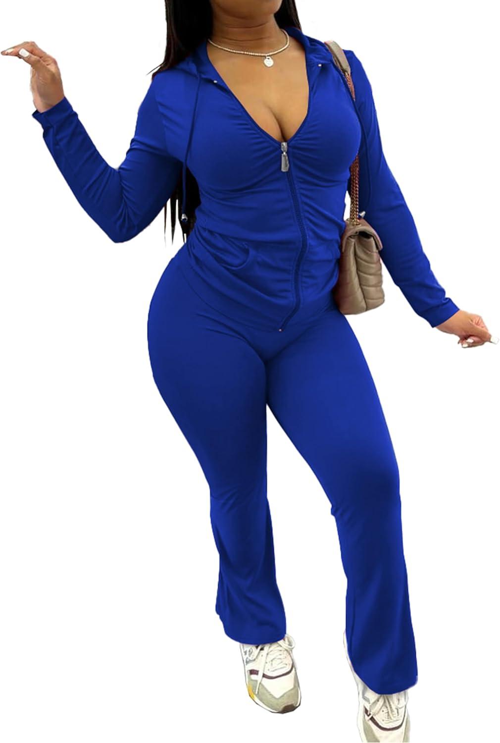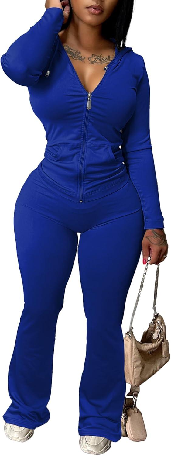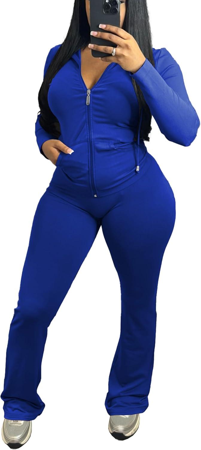 Get a free gift with your purchase of PINSV Women 2 Piece Outfits Workout Bodycon Tracksuit Long Sleeve Zip Up Hoodie Jacket Matching Flared Pants Sets(Royal Blue). Limited quantities available!