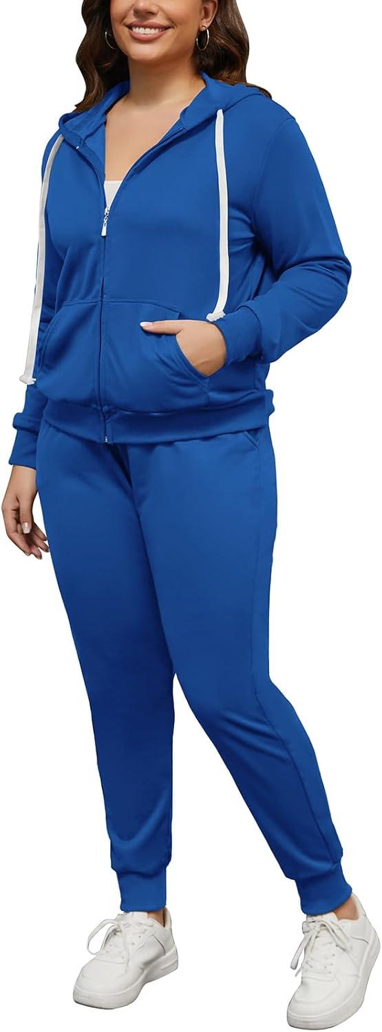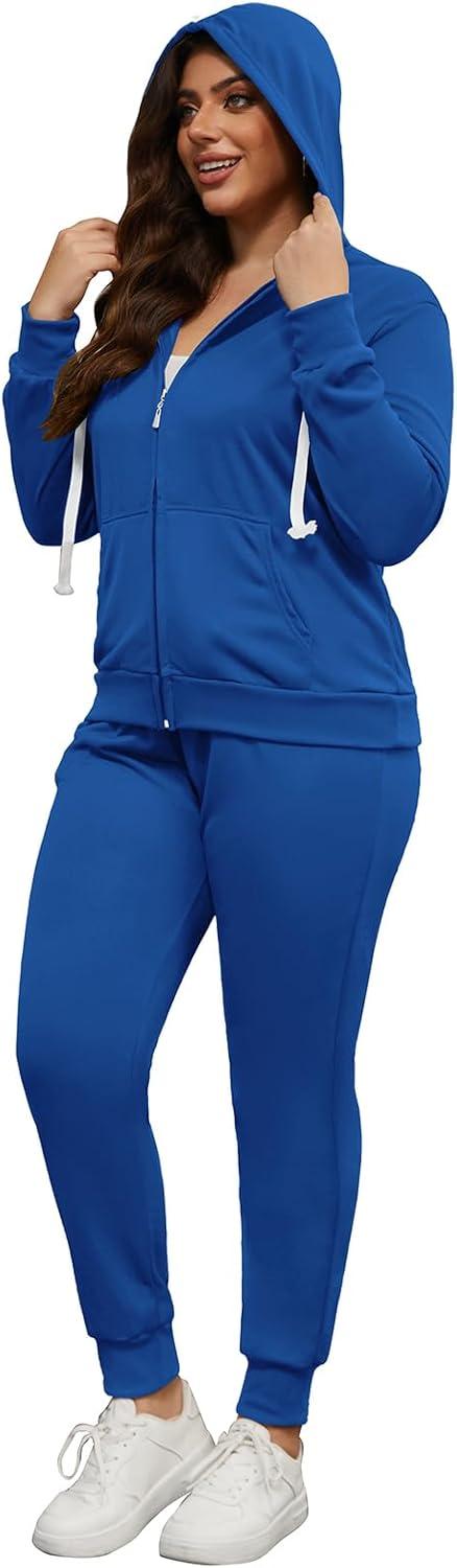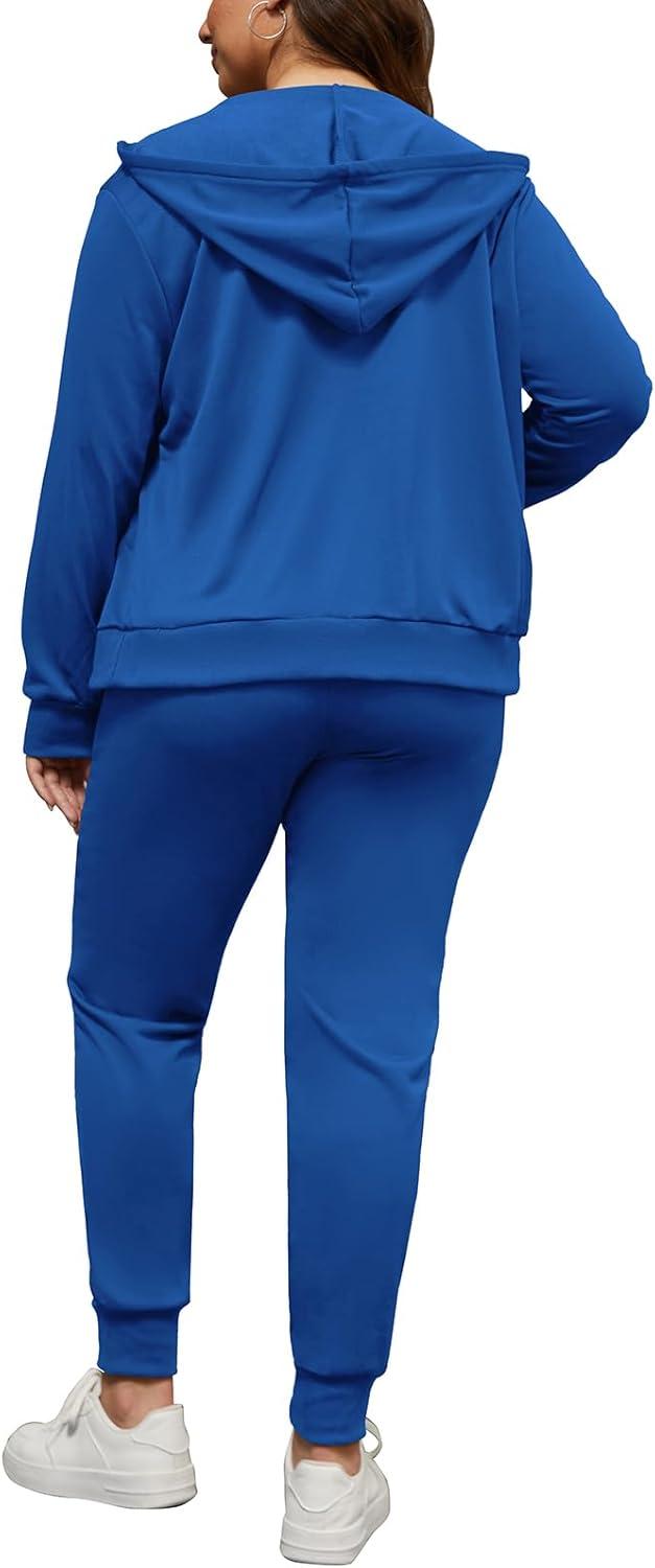 PINSV Women Plus Size 2 Piece Outfits Sweatsuits Full Zip Hooded Sweatshirt Sweatpants Tracksuits(A-blue)