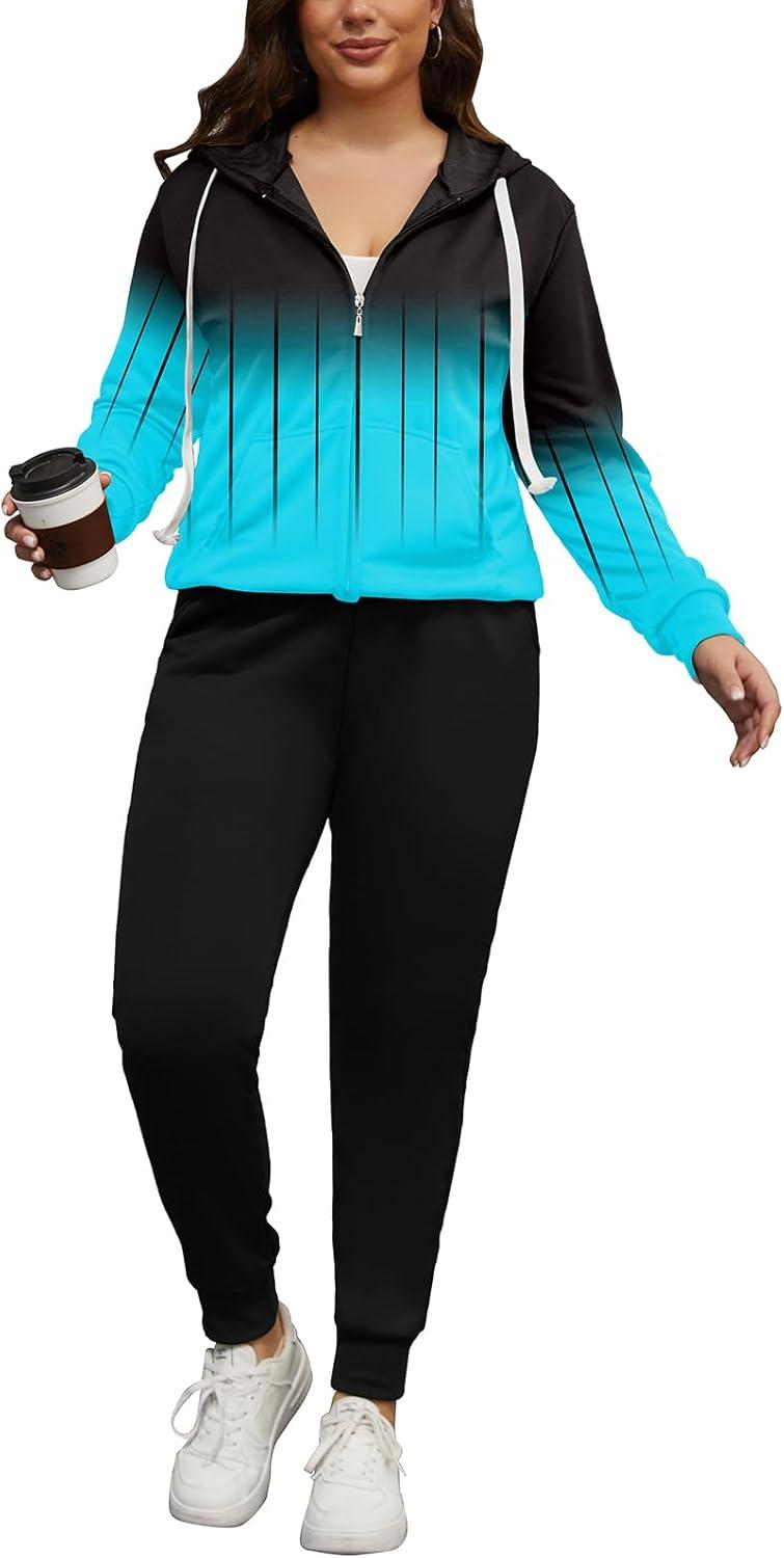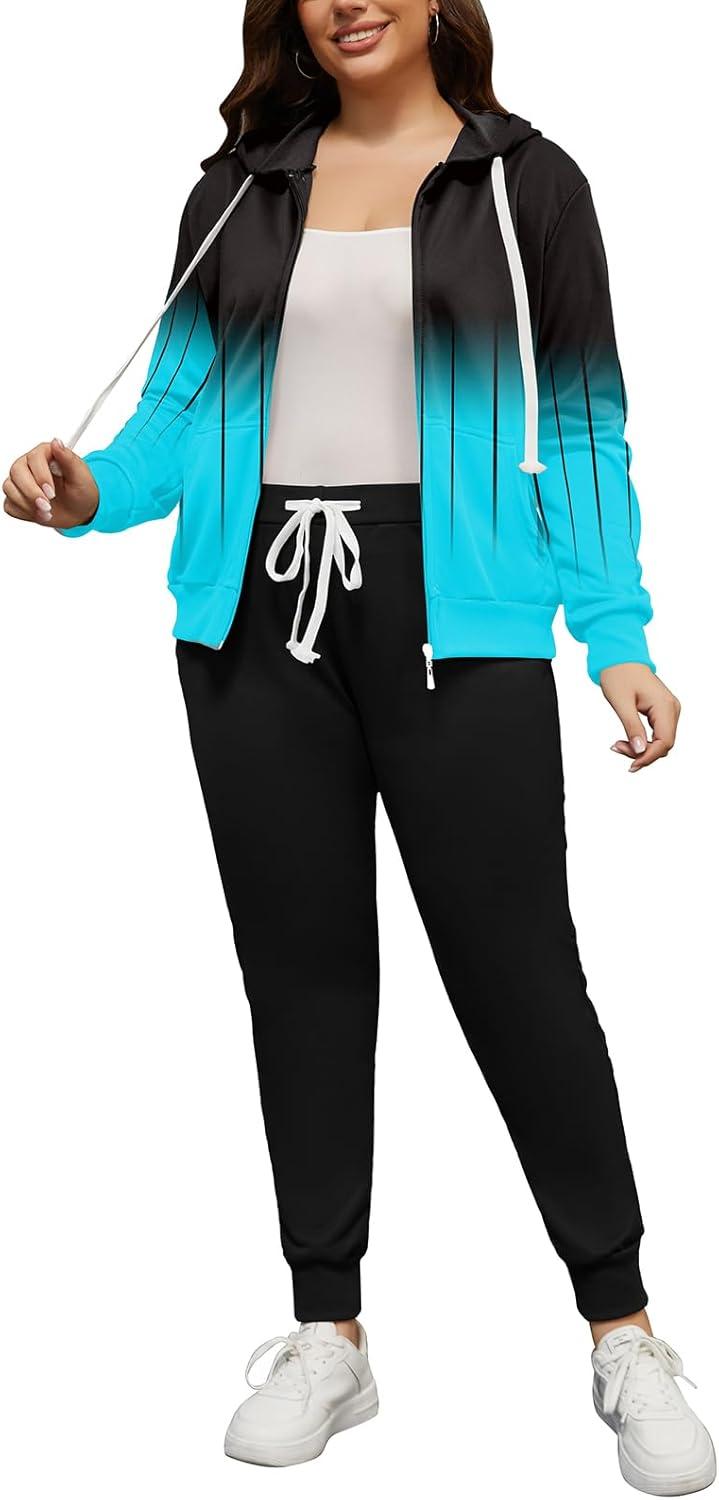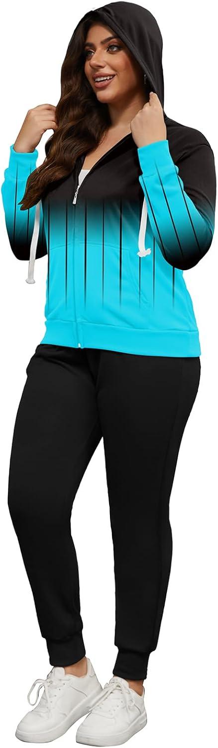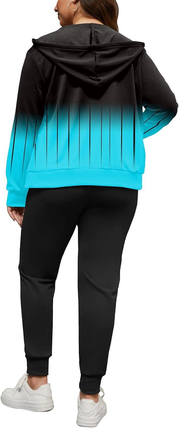 PINSV Women Plus Size 2 Piece Outfits Sweatsuits Full Zip Hooded Sweatshirt Sweatpants Tracksuits(B-black Gradient)