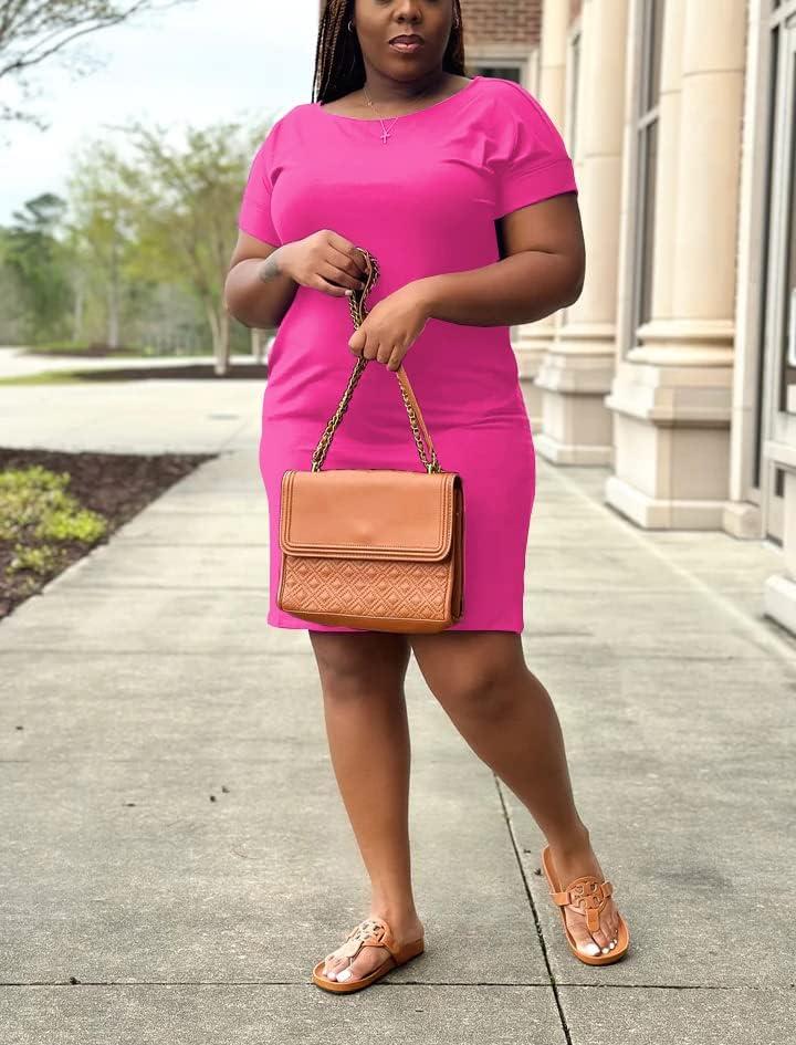 PINSV Women Plus Size Summer Casual T Shirt Dresses Short Sleeve Tunic Dress with Pockets Rose Red 1XL