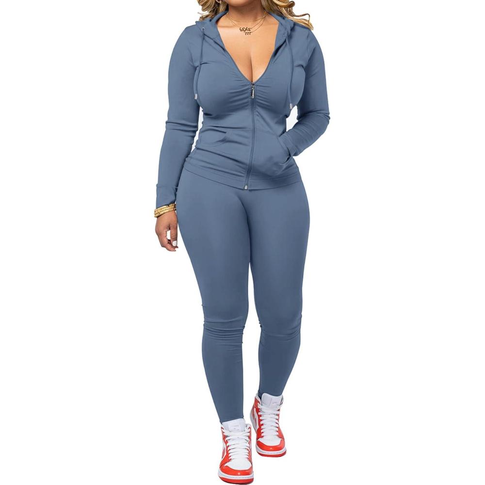 PINSV Women Two Piece Outfits Workout Sets Bodycon Tracksuit Long Sleeve Zip Up Hoodie Jacket Jogger Matching Sweat Pants Set Grey Blue B XXL