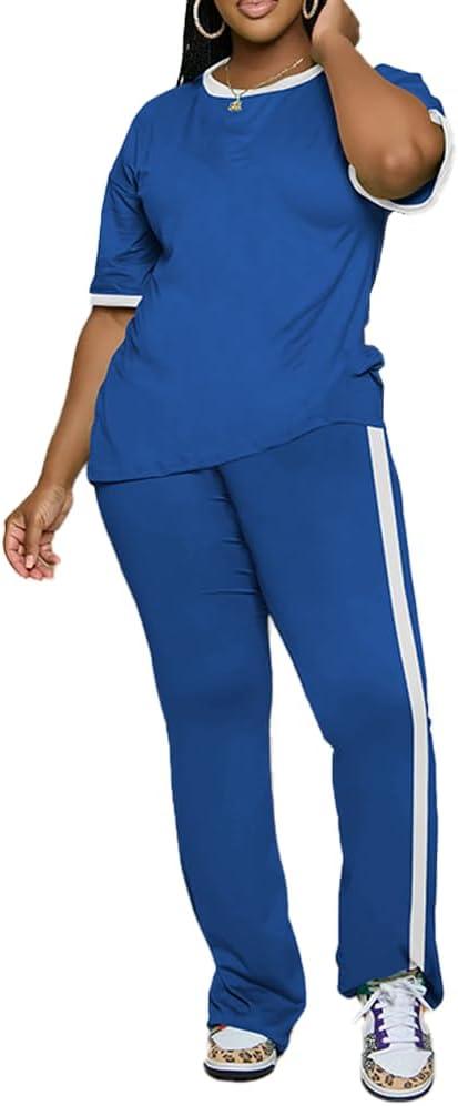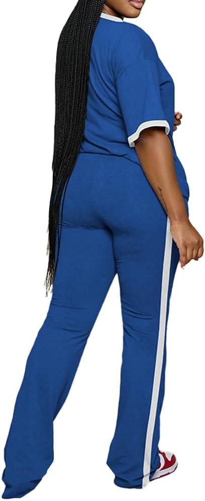 Womens 2 Piece Outfits Sets Casual Short Sleeve Top and Flare Pants Lounge Sets Tracksuit