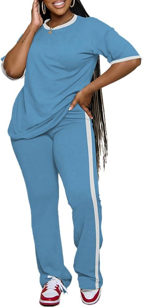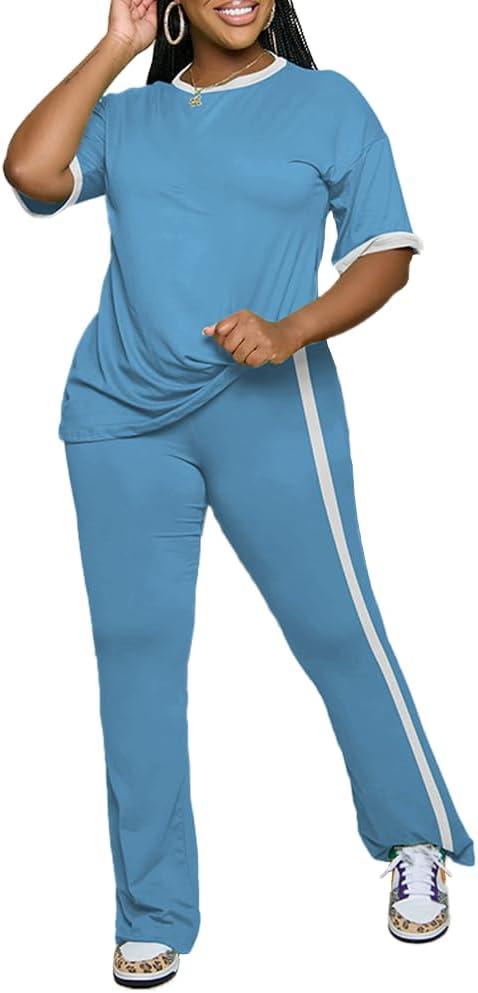 Womens 2 Piece Outfits Sets Casual Short Sleeve Top and Flare Pants Lounge Sets Tracksuit