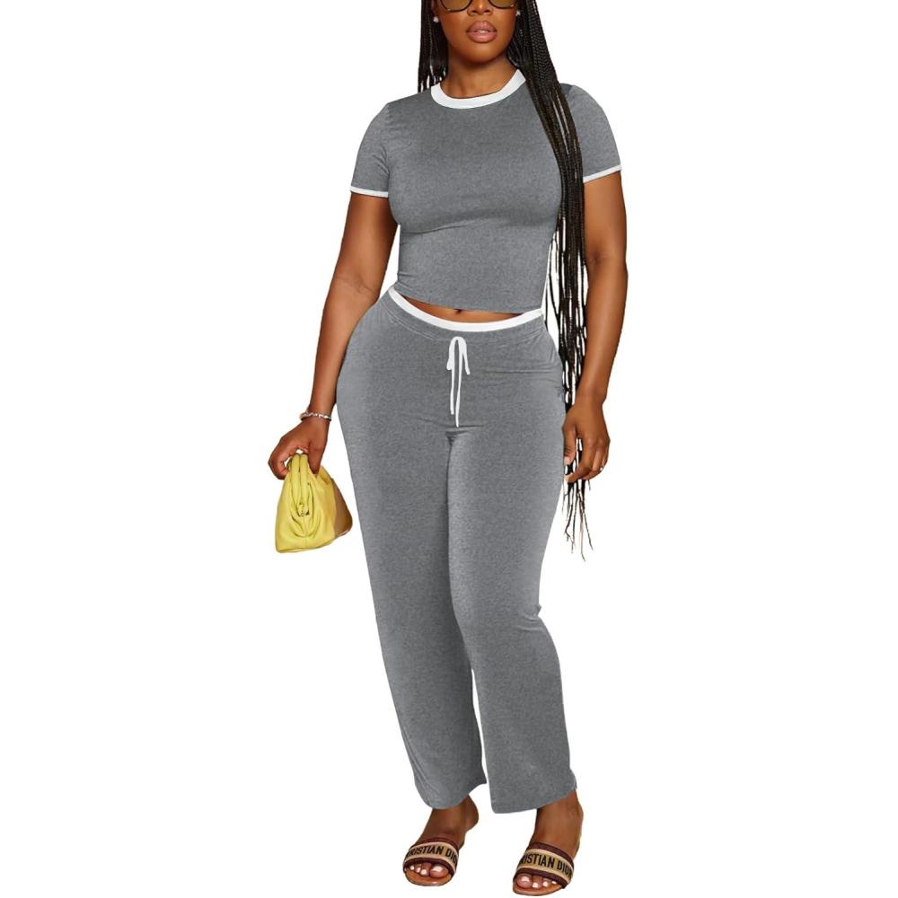 PINSV Women’s Plus Size 2 Piece Outfits Tracksuits Short Sleeve Top Pants Sets Sweatsuits(Grey)