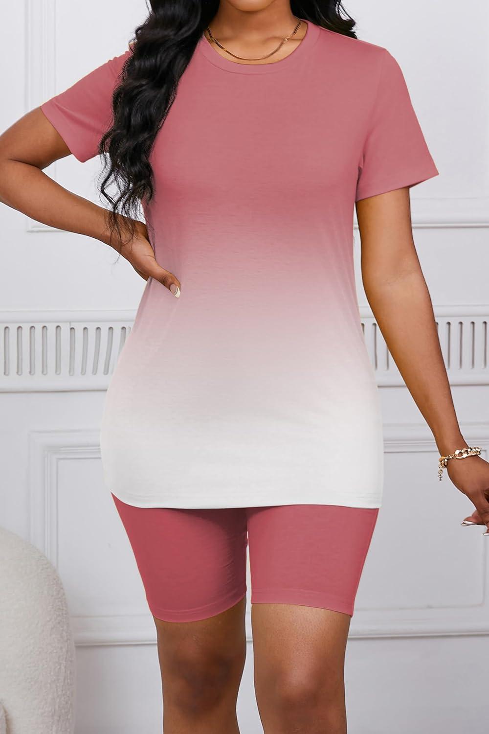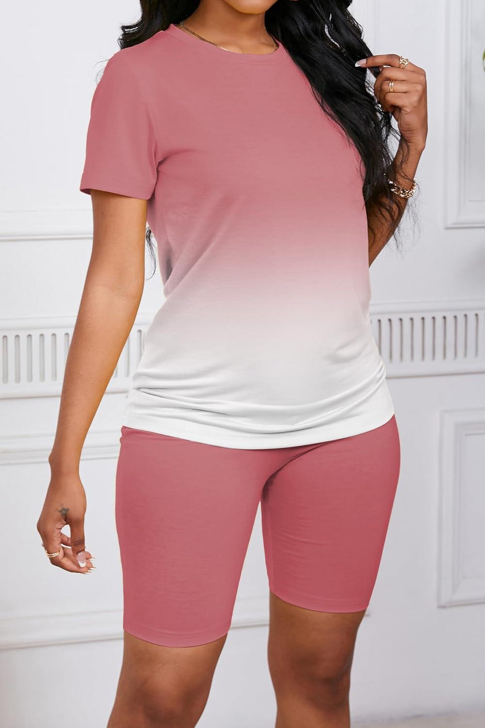 2 Piece Outfits for Women Summer Casual Tracksuit Gradient Short Pants Sets