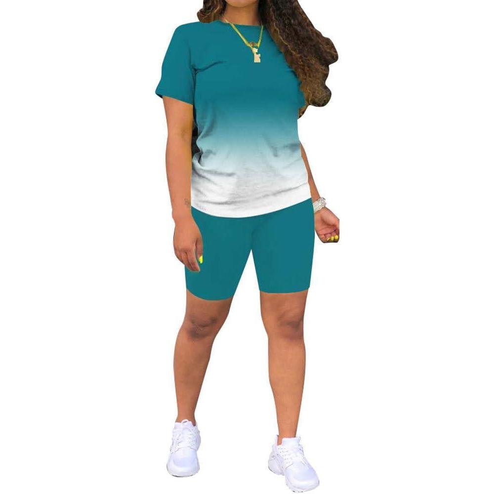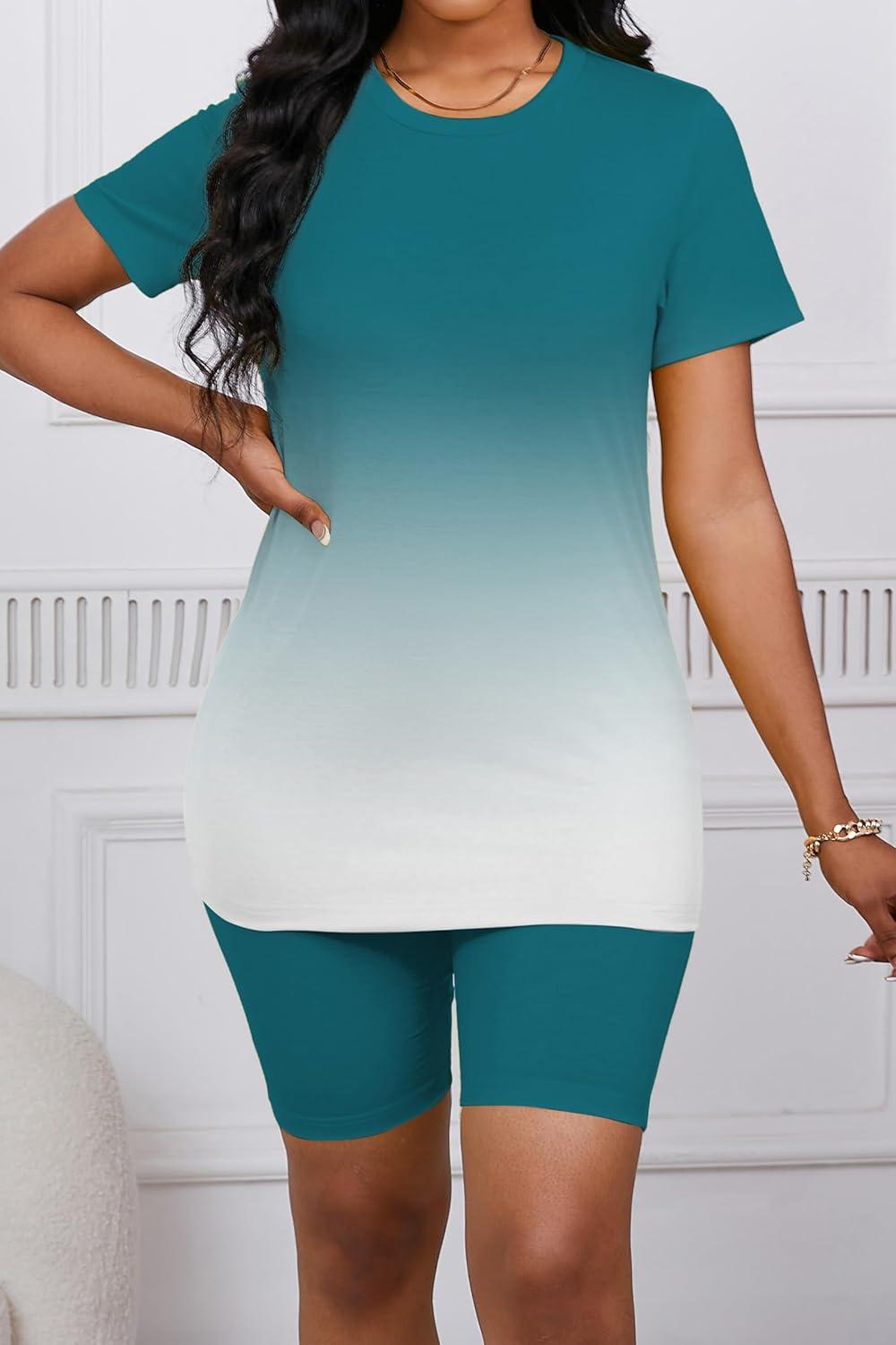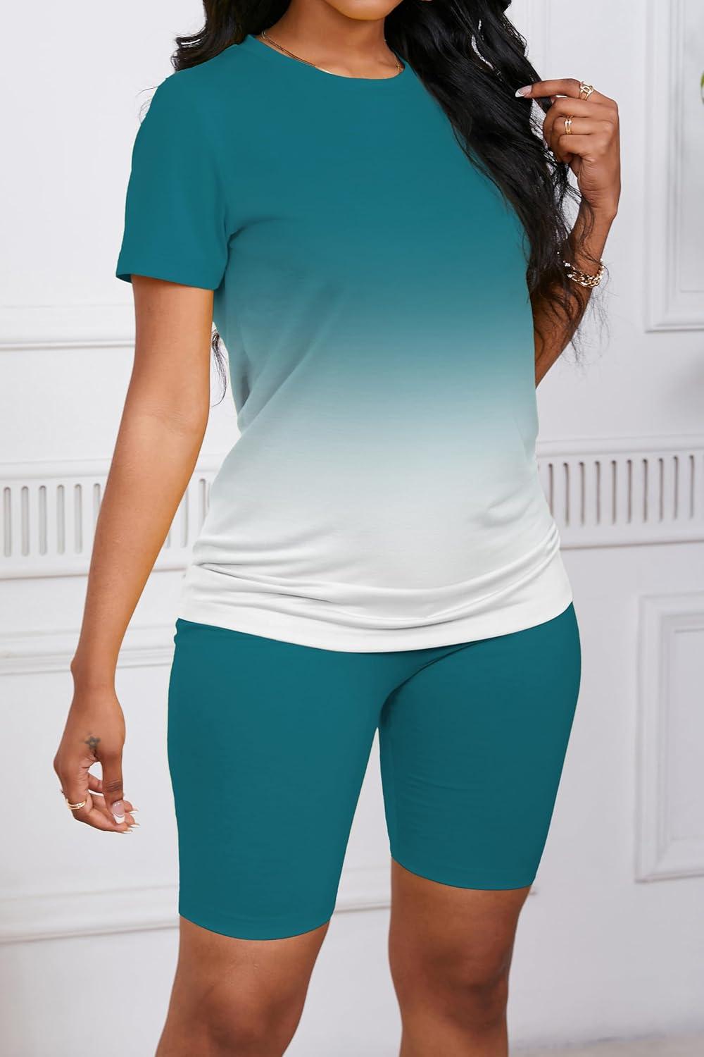 2 Piece Outfits for Women Summer Casual Tracksuit Gradient Short Pants Sets