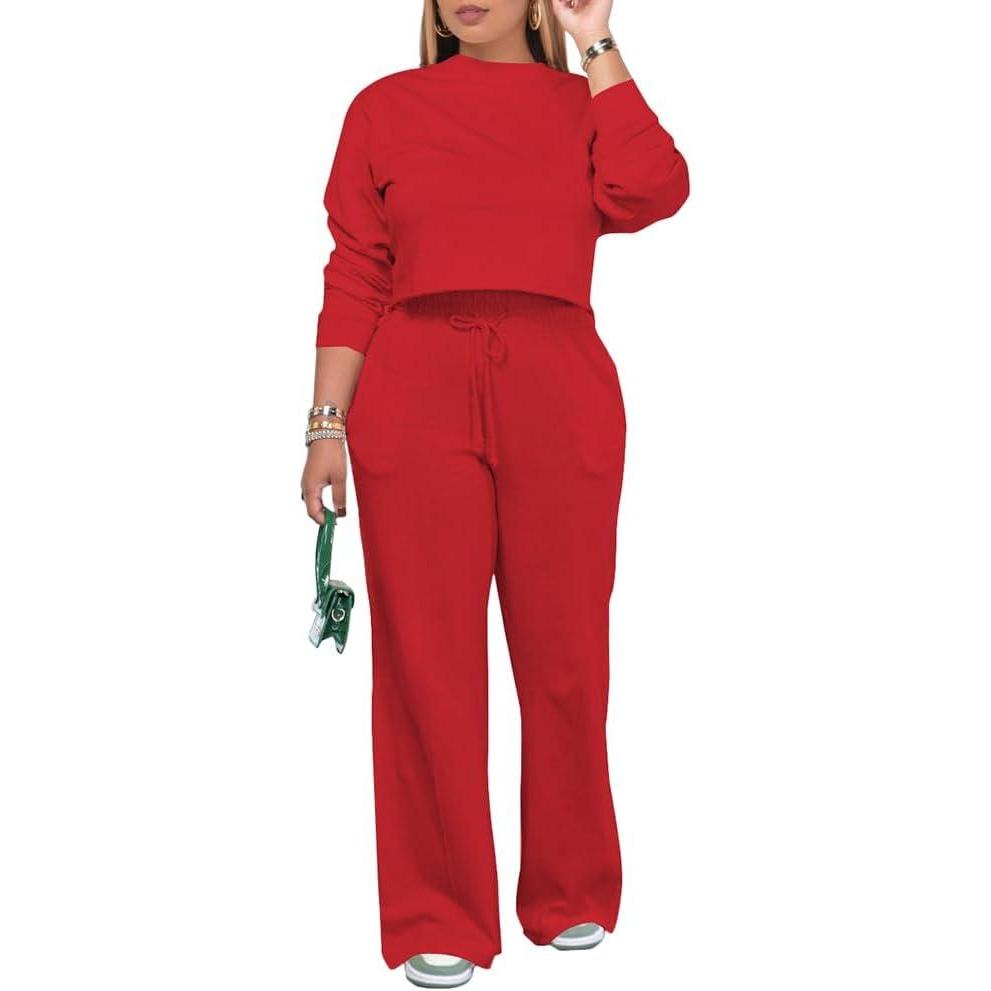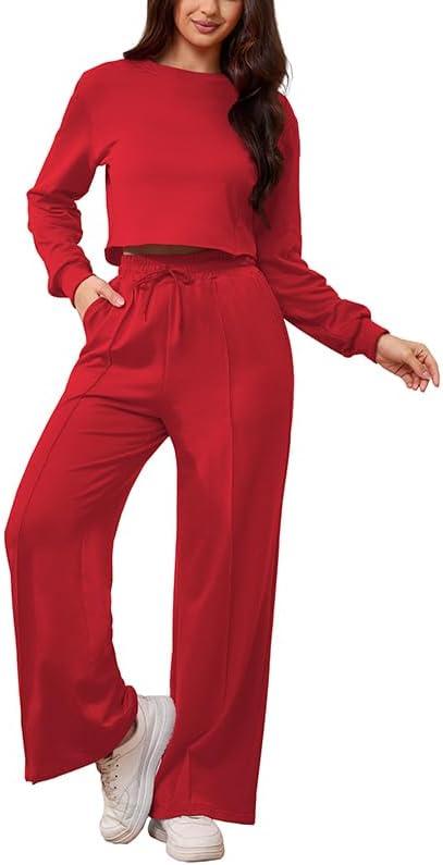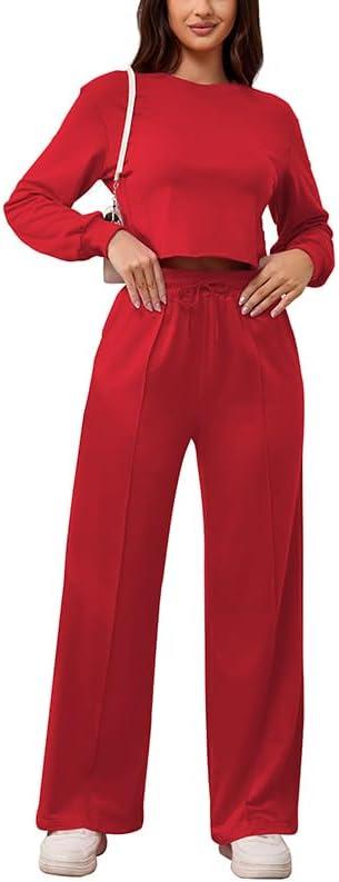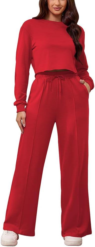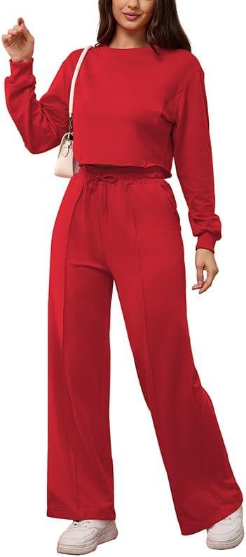 Get the PINSV Women’s 2 Piece Outfits Sweatsuit Set Long Sleeve Crop Top Drawstring Wide Leg Pants with Pockets Tracksuits Casual Set(Red) you’ve been eyeing at a discounted price during our seasonal sale event.