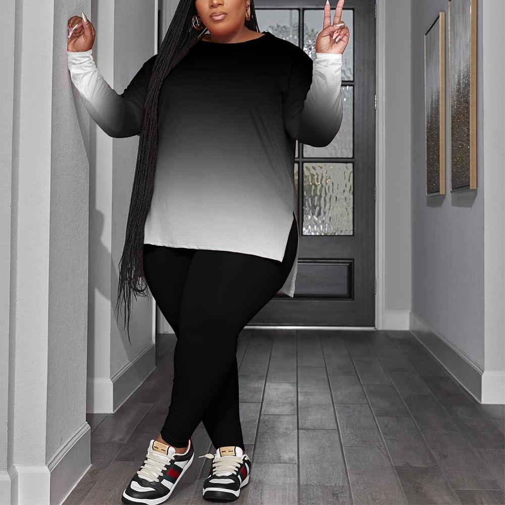 PINSV Women’s Plus Size 2 Piece Outfits Sweatsuits Tracksuit Loungewear Sets(C5-black Gradient)
