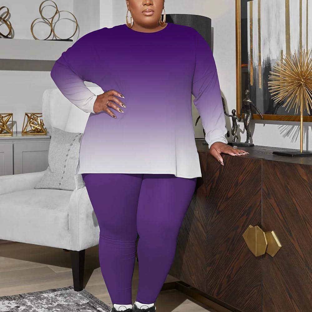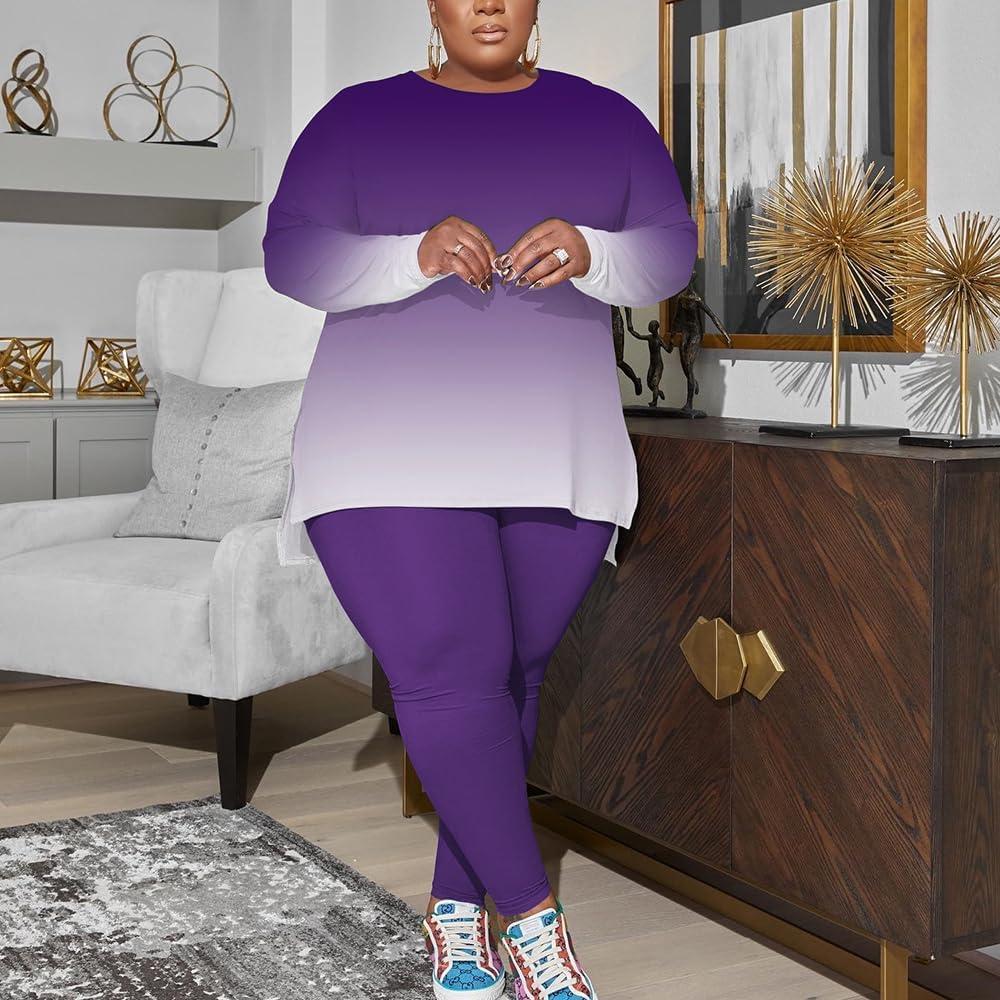 PINSV Women’s Plus Size 2 Piece Outfits Sweatsuits Tracksuit Loungewear Sets(A8-purple Gradual)