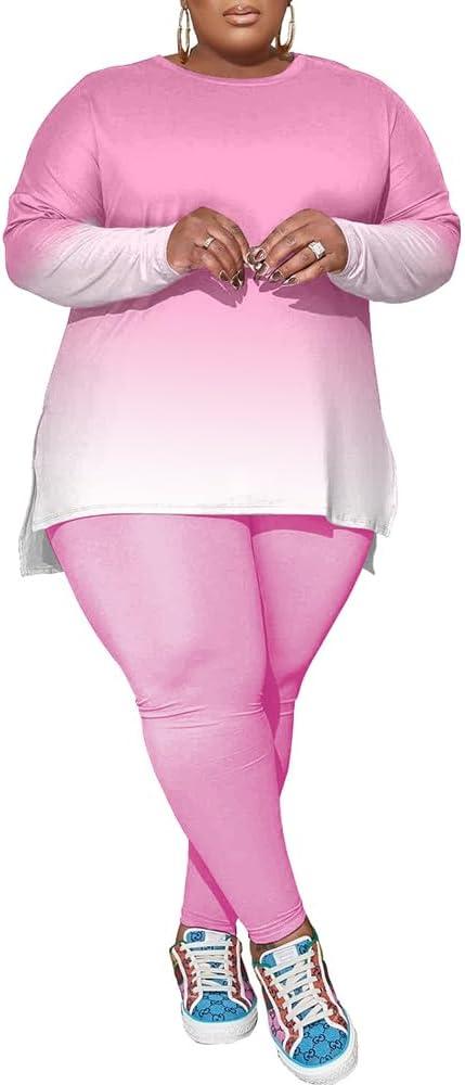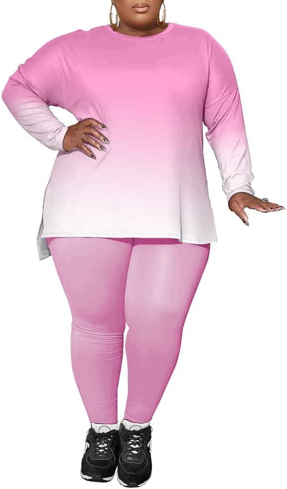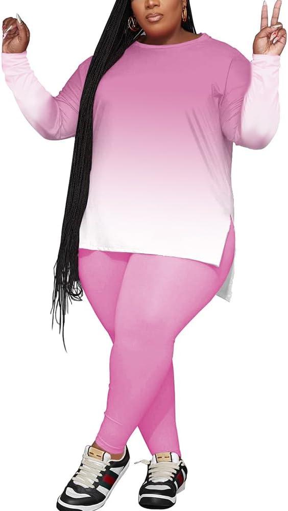 PINSV Women’s Plus Size 2 Piece Outfits Sweatsuits Tracksuit Loungewear Sets(A9-pink Gradual)