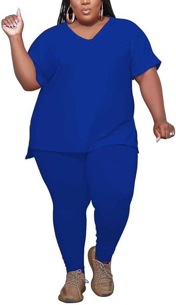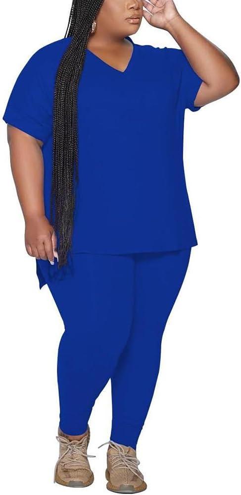 Women's Plus Size Two Piece Outfits Sweatsuits Track Suits Oversized Tshirts Long Sweatpants Athletic Clothing