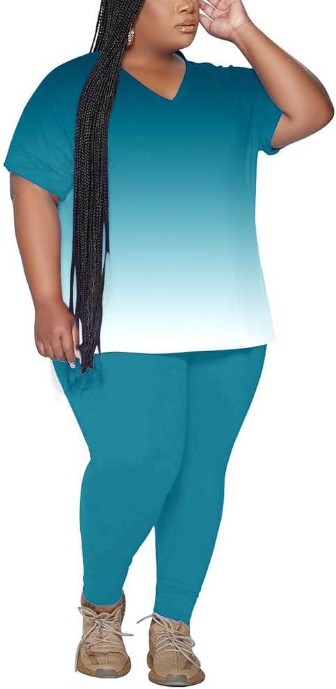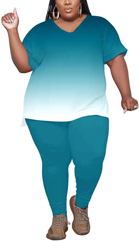 Women's Plus Size Two Piece Outfits Sweatsuits Track Suits Oversized Tshirts Long Sweatpants Athletic Clothing