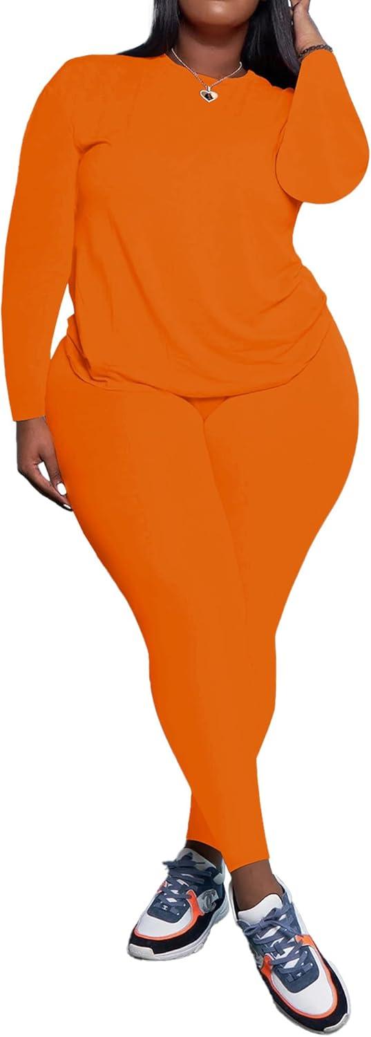 Women Plus Size Two Pieces Outfits Tracksuit Round Neck Top Leggings Sets
