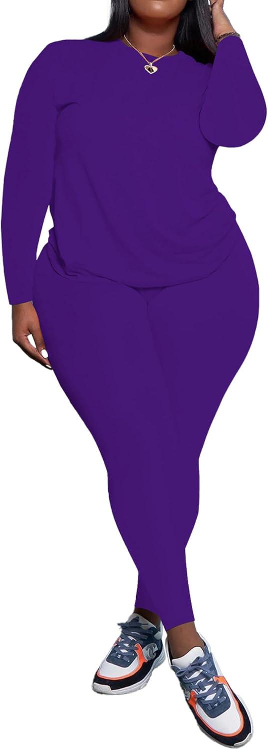 PINSV Women’s Plus Size 2 Piece Outfits Tracksuits Long Sleeve Top Pants Sets Sweatsuit(Purple)