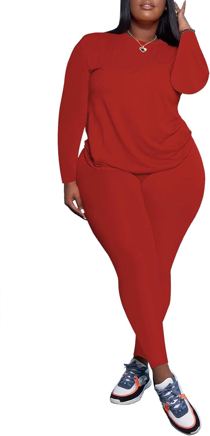 Women Plus Size Two Pieces Outfits Tracksuit Round Neck Top Leggings Sets