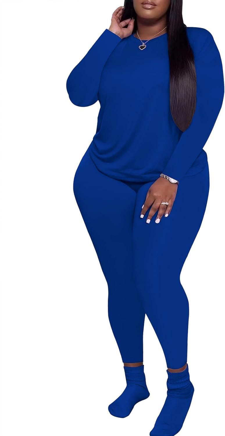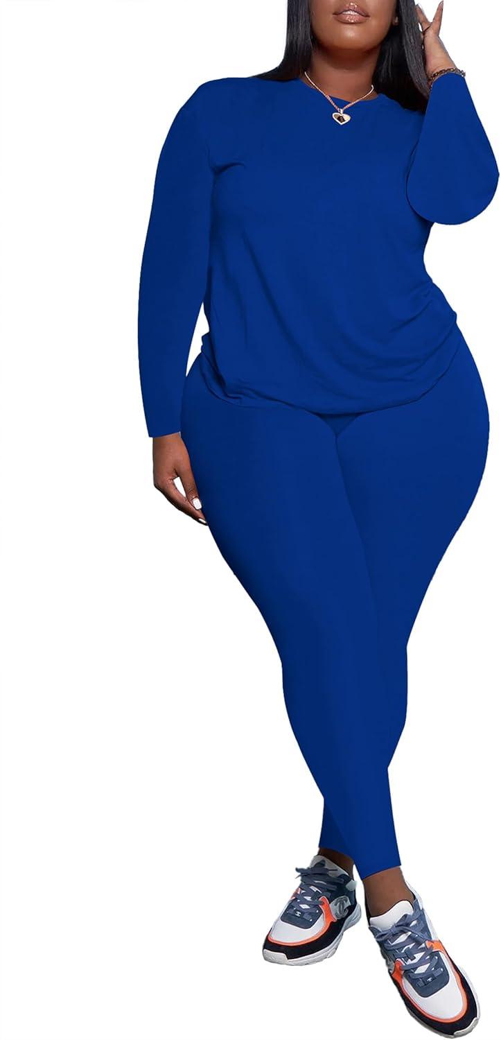 PINSV Women’s Plus Size 2 Piece Outfits Tracksuits Long Sleeve Top Pants Sets Sweatsuits(Blue)