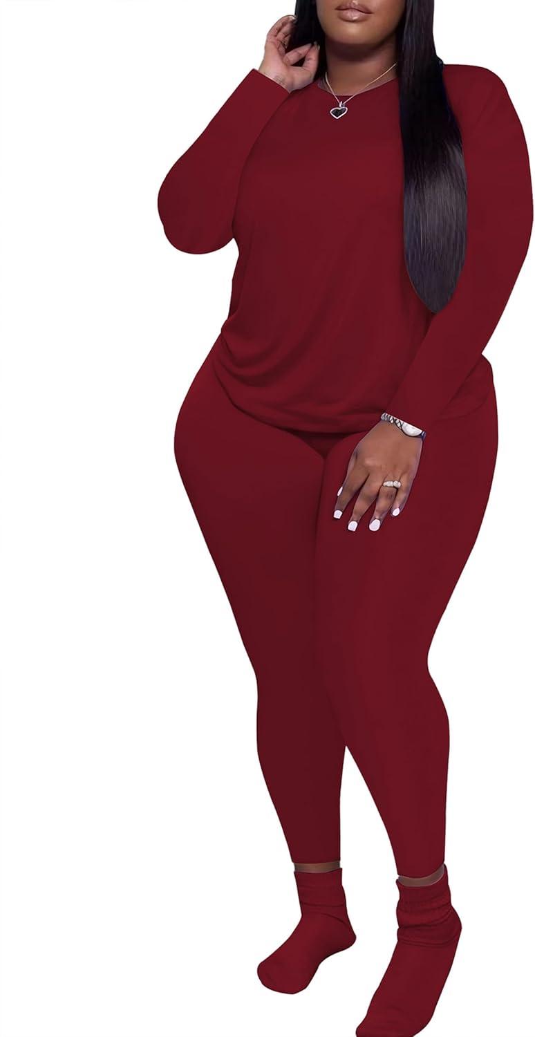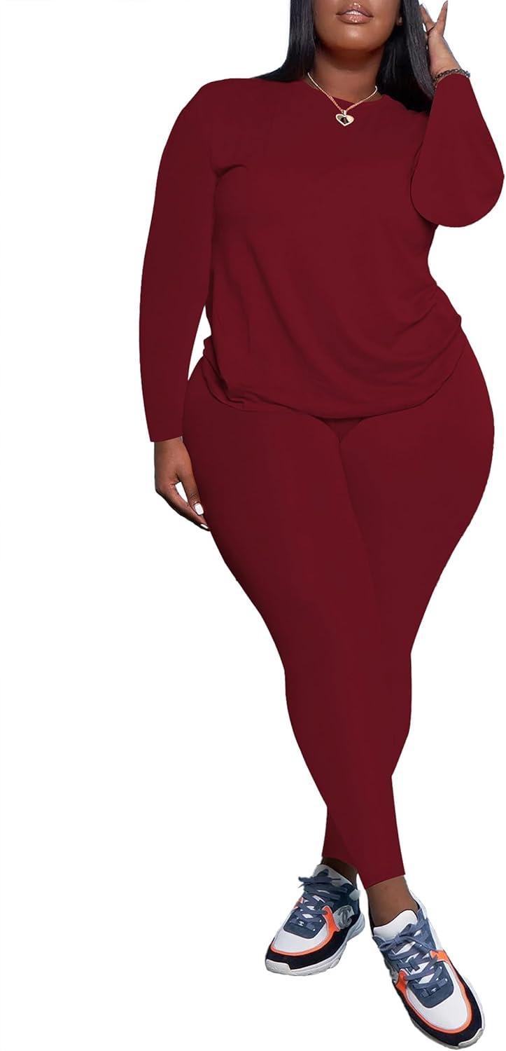 PINSV Women’s Plus Size 2 Piece Outfits Tracksuits Long Sleeve Top Pants Sets Sweatsuits(Burgundy)