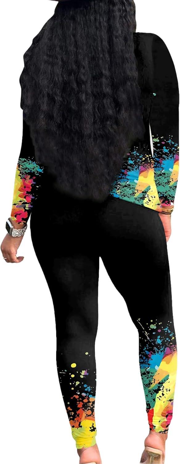 PINSV Women’s Tracksuits 2 Piece Outfits Sweatsuits Long Sleeve Top Jogger Legging Pants Sets(Black Paint)